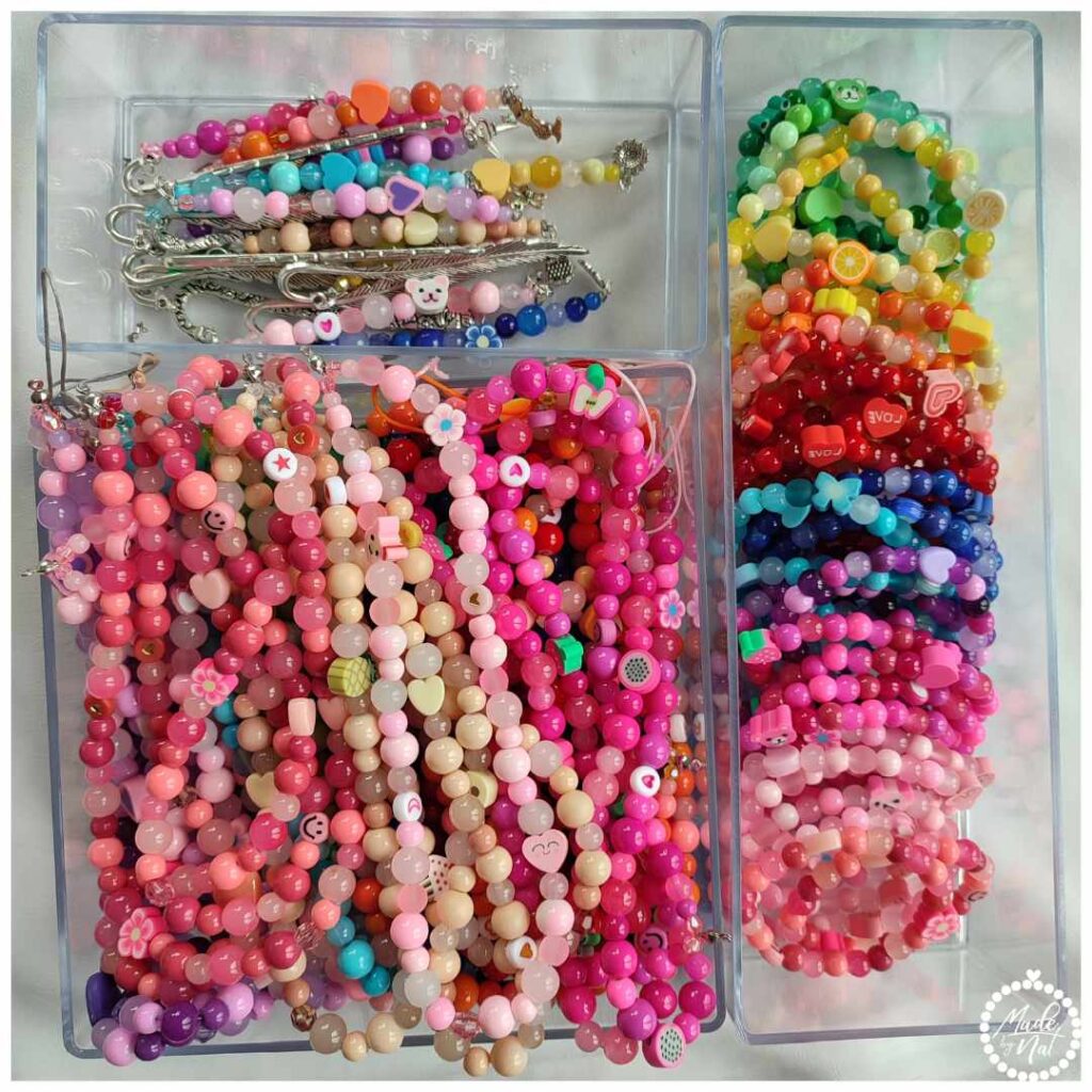 Swoją koralikową przygodę rozpoczęłam podczas studiów, wciągnęła mnie w nią bliska koleżanka. Początkowo tworzyłam dla siebie, rodziny i znajomych. Uczyłam się nowych technik i tworzenia coraz to nowych rzeczy. Głównie na zasadzie prób i błędów, rzadko korzystając z jakichś poradników. Wymyślałam w głowie projekt np. nowej bransoletki, dobierałam elementy i próbowałam ją wykonać, zapisując sobie długości, ilości, wymiary. Przełomowy był okres mojego urlopu macierzyńskiego po urodzeniu pierwszego synka. Wpadłam na pomysł personalizowanych bransoletek dla mam, bo sama chciałam takie mieć. Pierwszą zrobiłam dla siebie w błękitnym kolorze z napisem „Mama Leonarda”. Później do oferty dodałam breloczki – z imionami i napisami np. „Kochana mama”. Także dla chłopców i mężczyzn. Tworzyłam je na różne okazje: Dzień Matki i Ojca, Dzień Babci i Dziadka, Dzień Dziecka, Dzień Kobiet i Chłopca, zakończenie roku szkolnego. Podczas drugiego urlopu macierzyńskiego jeszcze bardziej poszerzyłam ofertę np. o zawieszki do telefonu i zakładki do książek. Uczyłam się także jak wykorzystywać do sprzedaży media społecznościowe oraz jak robić ładne zdjęcia produktowe.