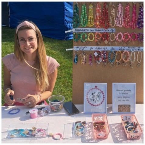 W tym roku spełniłam swoje biznesowe marzenie i wystawiłam swoje produkty na targach rękodzielniczych. Było to cudowne doświadczenie, móc spotkać się z klientami, porozmawiać, doradzić, usłyszeć miłe słowa o mojej twórczości. Pierwszym wydarzeniem był piknik rodzinny, na którym było dużo dzieci, dlatego zabrałam także koraliki, zawieszki i inne półfabrykaty, żeby głównie dziewczynki (ale chłopcy także) mogli sami stworzyć coś dla siebie. Pomysł ten okazał się strzałem w dziesiątkę, dzieci bardzo chętnie z tej możliwości korzystały, a dla mnie bezcennym było widzieć radość na ich twarzach. Moimi planami na przyszłość jest właśnie udział w różnych targach i jarmarkach, a kolejnym marzeniem jest wejście we współpracę ze sklepami stacjonarnymi. W grudniu miałam był wystawcą na jarmarku św. Mikołaja w Tarnowie Podgórnym, jednak niestety musiałam odwołać swój udział z powodu choroby. Mam nadzieję, że uda mi się przy innej okazji spotkać się z mieszkańcami naszej gminy i zaoferować im moje rękodzieła.